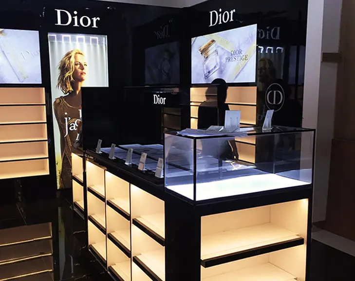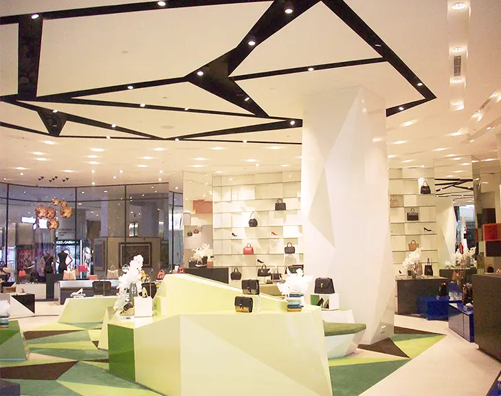 Kami menciptakan interior yang dirancang khusus untuk memperkuat identitas brand kosmetik dan fashion Anda.